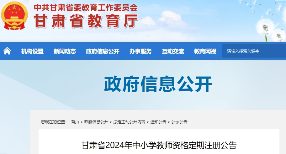 根据教育部印发的《中小学教师资格定期注册暂行办法》和甘肃省教育厅印发的《甘肃省中小学教师资格定期注册实施细则(2024年修订)》等有关规定,现将甘肃省2024年中小学教师资格定期注册工作有关事项公告如下。