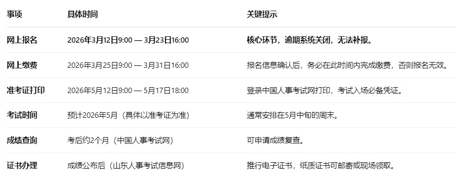 掌握全局时间线是成功报名的第一步,请务必牢记以下核心日期: