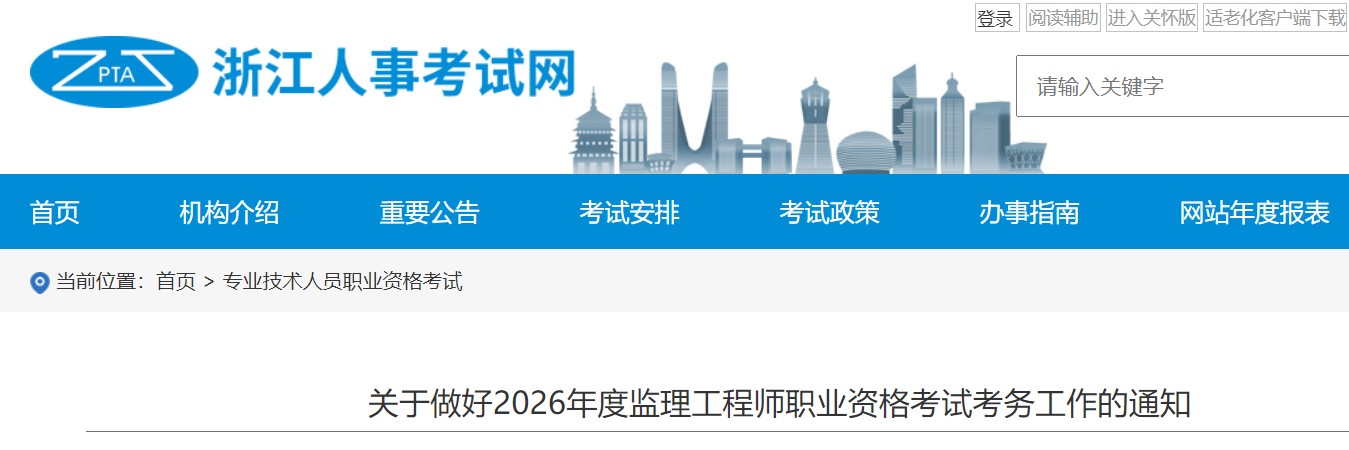 2026年度浙江省专业监理工程师职业资格考试考务工作已全面启动。本文基于官方通知,为您系统梳理本次浙江省专业监理工程师考试的报名时间、报考条件、考试科目、考点设置及关键注意事项,是考生备考不可或缺的权威指南。