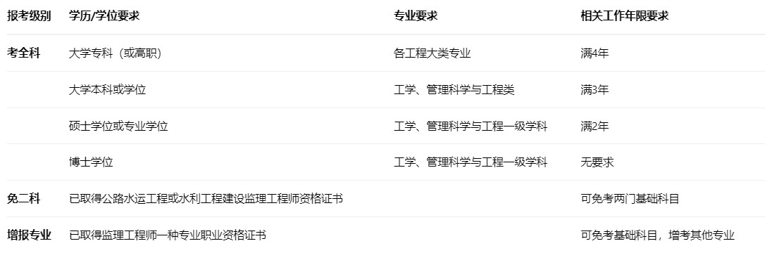 请对照下表,确认自己是否符合山东监理工程师报名条件(相关工作年限计算截至2026年12月31日):