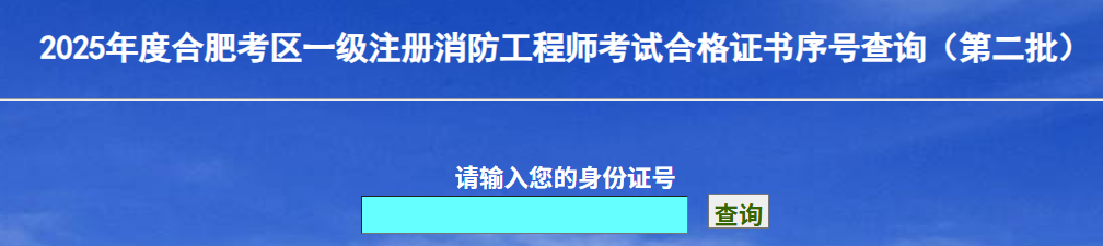 近日合肥人事考试网开通2025年一级消防工程师第二批证书序号查询入口,需要输入身份证号码进行查询。
