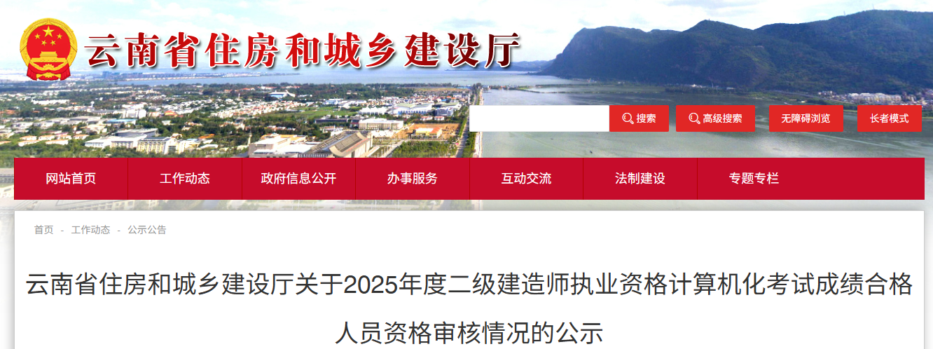 根据《云南省住房和城乡建设厅关于2025年度云南省二级建造师执业资格计算机化考试有关工作的通知》(云建建〔2025〕20号)和《云南省住房和城乡建设厅关于云南省2025年度二级建造师执业资格计算机化考试成绩查询有关事宜的通知》要求,省住房城乡建设厅对云南省2025年二级建造师执业资格计算机化考试全部科目考试成绩达到合格标准人员(含新考和续考)的资格进行了审核。现将审核结果在云南省住房和城乡建设厅官网(https://zfcxjst.yn.gov.cn)、云南省建设监管公共服务平台(https://www.ynjzjgcx.com/index)和云南省建设注册考试中心官网(https://www.ynjspx.cn)予以公示。公示期为2025年9月18日——24日。公示期间集中接受监督举报,举报情况应实事求是。以单位名义举报或反映情况的,需加盖单位公章;个人举报或反映情况的,应署真实姓名和联系电话。