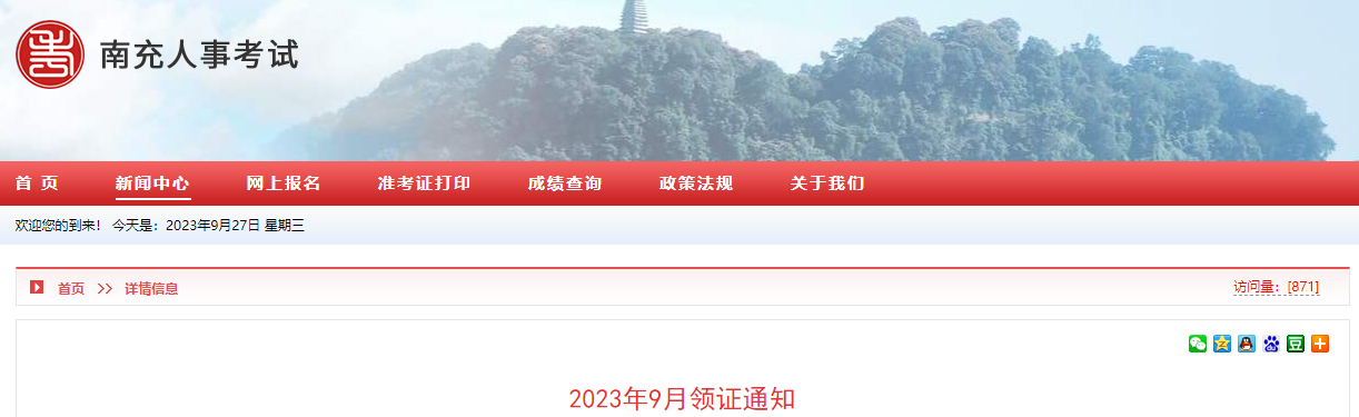 9月26日,南充人事考试网发布了“2023年9月领证通知”,其中2023南充监理工程师合格证书开始领取。