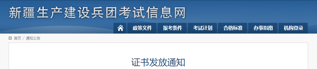 3、考生领取证书。兵直考生在兵团人力资源考试院(乌鲁木齐市天山区光明路276号E阳臻品4楼)领取,咨询电话:0991-8880763;各师考生在所属师局考试管理机构领取,领取事宜咨询各师,联系方式见“兵团考试信息网”“通知公告”栏目。