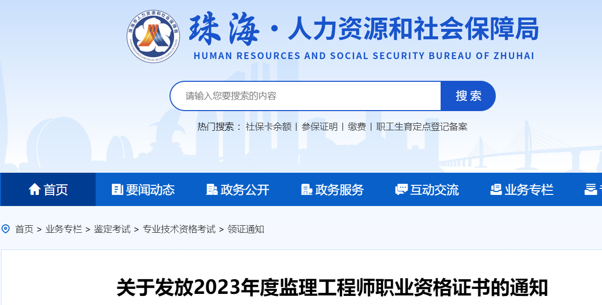 9月12日,珠海人力资源和社会保障局发布了“关于发放2023年度监理工程师职业资格证书的通知”,定于2023年9月13日开始发放2023年度监理工程师职业资格证书。