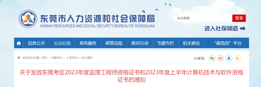 9月14日,东莞市人力资源和社会保障局发布了“关于发放东莞考区2023年度监理工程师资格证书的通知”,请考生及时领取。