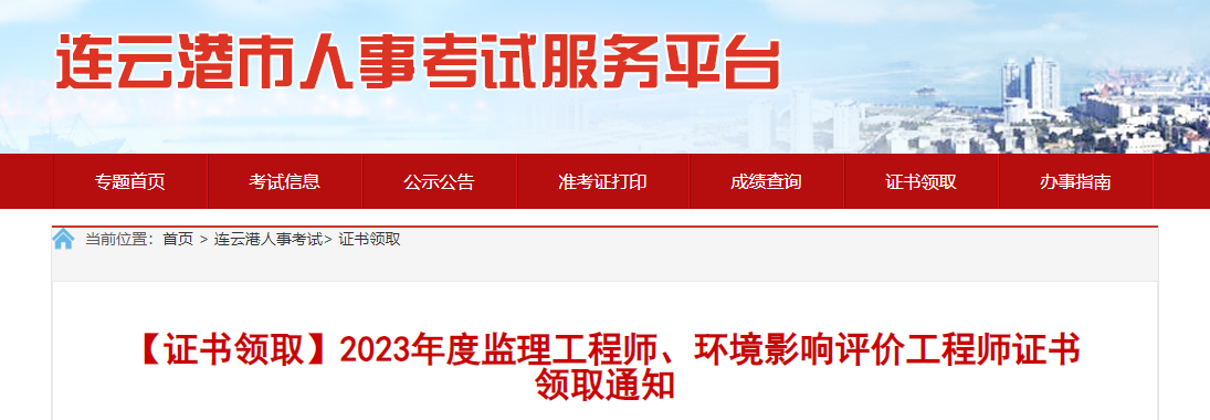9月12日,连云港市人力资源和社会保障局发布了“2023年度监理工程师证书领取通知”,请考生及时领取。