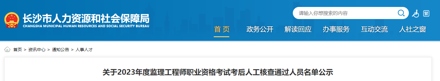 8月9日,长沙市人力资源和社会保障局发布了“关于2023年度监理工程师职业资格考试考后人工核查通过人员名单公示”,现将核查通过人员名单予以公示,公示时间为2023年8月9日至8月15日。
