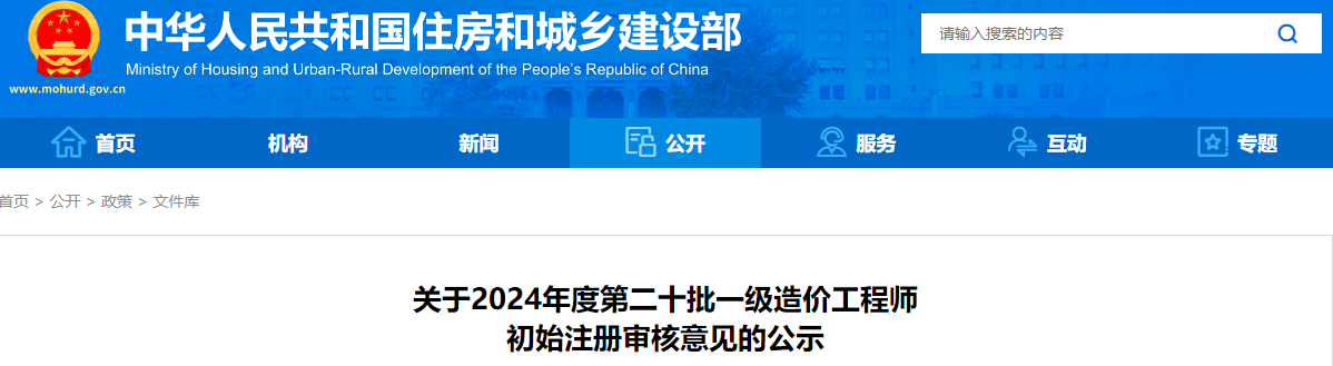 2024年8月27日,中华人民共和国住房和城乡建设部发布了《关于2024年度第二十批一级造价工程师初始注册审核意见的公示》,其中明确共有913人符合一级造价师初始注册条件,375人不符合条件,相关人员名单公示截至9月9日。