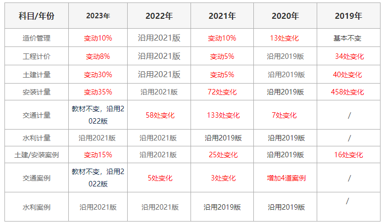 一级造价师教材一般每年一小改,3-4年一大改,2023年一级造价师教材进行了比较大的改动,因此预计2024年一造教材会有变动,但是变化不大。