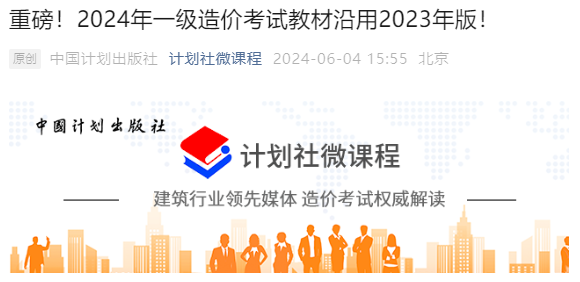 2024年6月4日,中国计划出版社发布消息,明确2024年一造考试继续沿用2023年出版的教材。