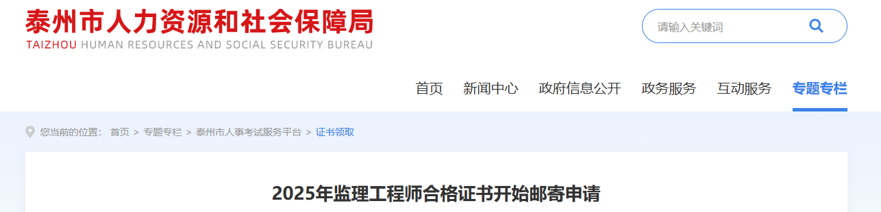 9月10日,泰州市人力资源社会保障局发布了“2025年监理工程师合格证书开始邮寄申请”的通知,考生可按照要求,进行邮寄申请。