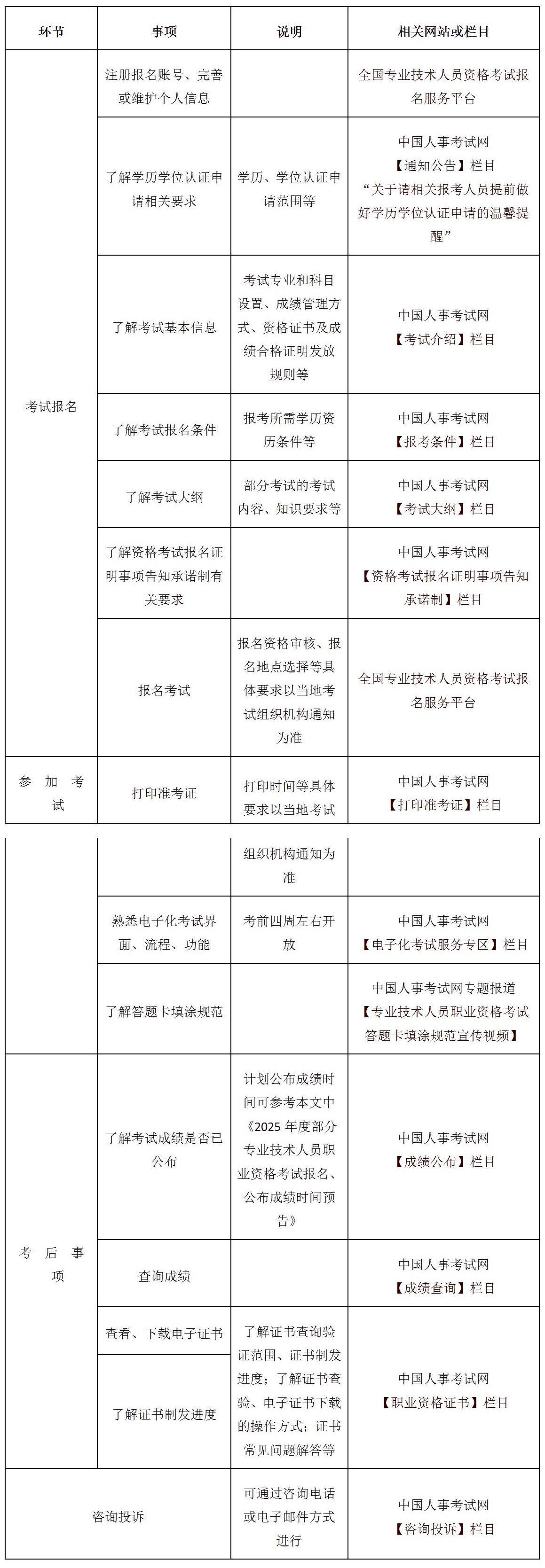 2026年度部分专业技术人员职业资格考试报名、公布成绩时间预告: