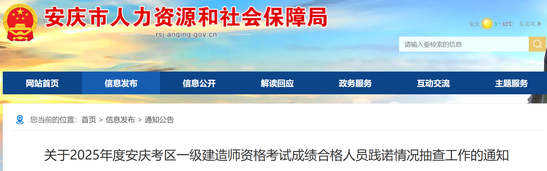 根据专业技术人员职业资格考试报名证明事项告知承诺制有关要求,现对2025年度安庆考区一级建造师资格考试成绩合格人员报考资格条件进行随机抽查,现将有关情况通告如下: