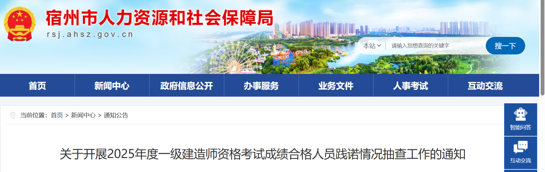 为切实加强事中事后监管,确保告知承诺制试点工作顺利推进,根据省人力资源社会保障厅《关于专业技术人员资格考试告知承诺制试点工作有关事宜的通知》(皖人社秘〔2020〕41号)要求,于近期开展宿州市2025年度一级建造师资格考试成绩合格人员践诺情况随机抽查工作,现将有关情况通知如下。