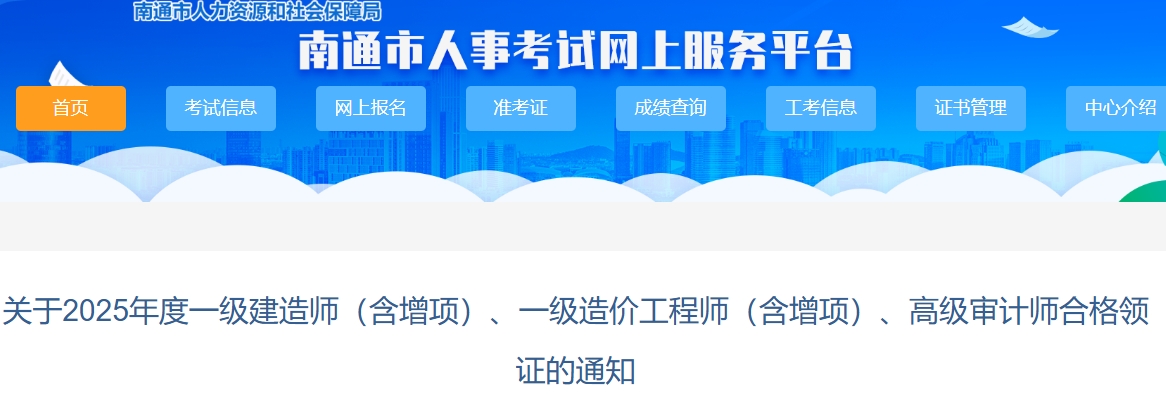 1月23日,南通市人力资源和社会保障局发布《关于2025年度一级建造师(含增项)、一级造价工程师(含增项)、高级审计师合格领证的通知》,明确江苏南通2025年一级建造师资格证书集中发放时间:2026年1月27日至1月29日。