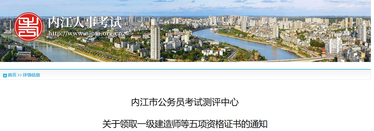 1月19日,内江人事考试发布《内江市公务员考试测评中心关于领取一级建造师等五项资格证书的通知》,明确内江2025年度一级建造师证书领取时间是2026年1月19日起。