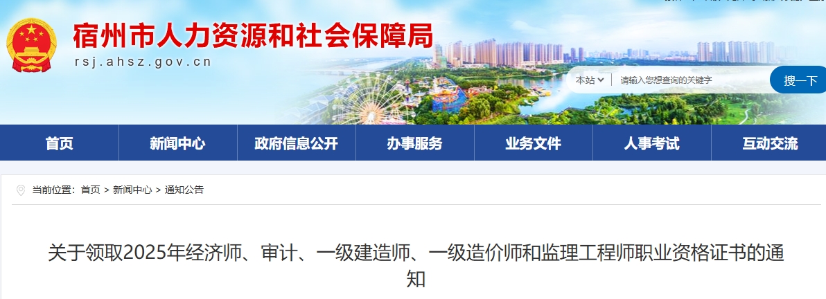 1月13日,宿州市人力资源和社会保障局发布《关于领取2025年经济师、审计、一级建造师、一级造价师和监理工程师职业资格证书的通知》,明确宿州2025年度一级建造师证书实行网上邮寄,也可携带本人有效身份证现场领取。
