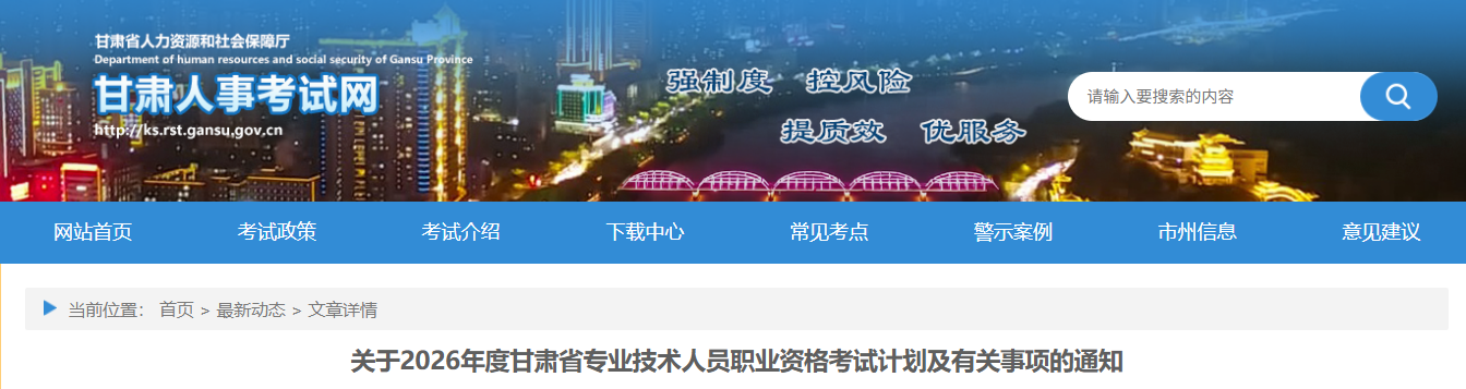 附件:2026年度甘肃省专业技术人员职业资格考试工作计划(https://ks.rst.gansu.gov.cn/ncms/article_465f5bf7530c9b83322e6519eacca90d.shtml)