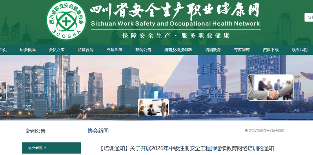 近日,四川省安全生产职业健康网发布《关于开展2026年中级注册安全工程师继续教育网络培训的通知》。通知中对继续教育培训对象、培训类别、培训时间、费用及报名流程等进行了明确。