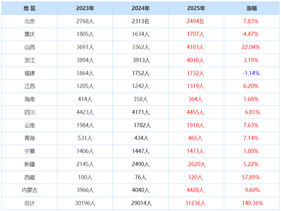 注:广西省仅公布部分合格人数名单,本次数据不做参考。