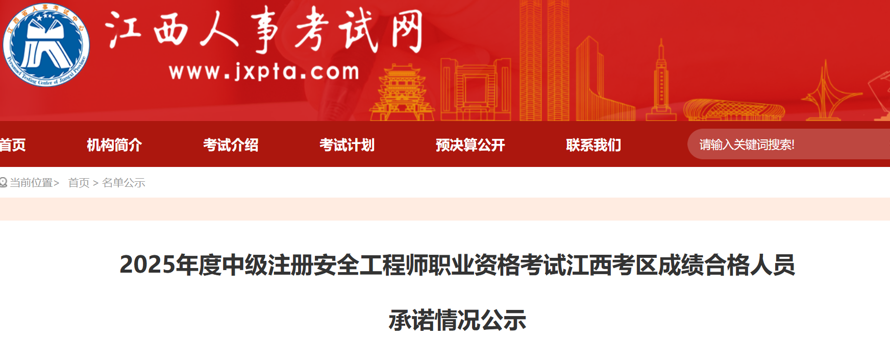 2025年度中级注册安全工程师职业资格考试江西考区成绩合格人员承诺情况公示