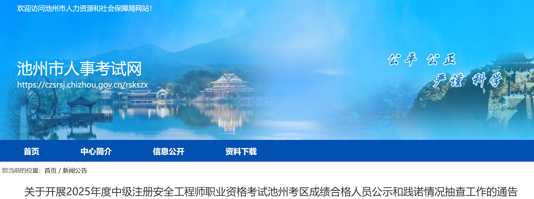 现将2025年度中级注册安全工程师职业资格考试池州考区成绩合格人员予以公示,共78人(名单见附件1)。
