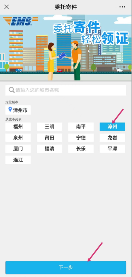 步骤三:选择“漳州”后,按下一步