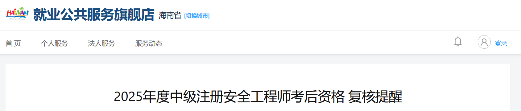 近日,海南就业公共服务旗舰店发布2025年中级注册安全工程师考后资格复核提醒,共116人需要进行资格复核,线上提交材料时间:2025年12月31日-2026年1月5日12:00。