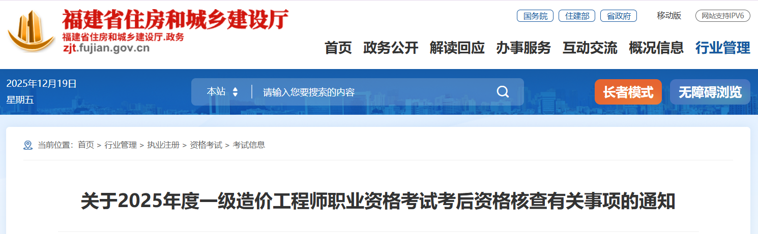 福建建设执业资格注册中心发布通知,12月22-23日对一级造价工程师全部科目成绩合格人员进行考后资格核查,需携带报名表、工作情况表等材料现场核查,逾期未提交或材料虚假将按成绩无效处理。