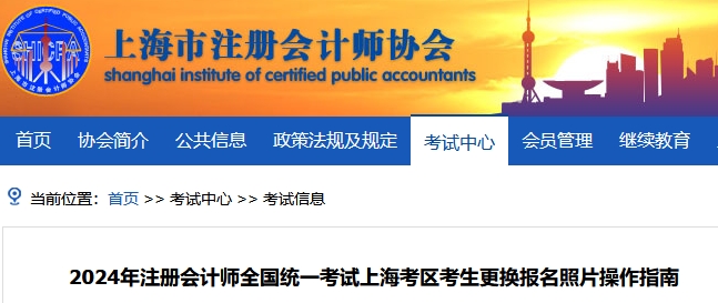 近日,上海注册会计师协会发布了《2024年注册会计师全国统一考试上海考区考生更换报名照片操作指南》,照片审核不通过或需要更换照片的报名人员注意,上海注会报名照片更换时间为6月3日至6月14日。