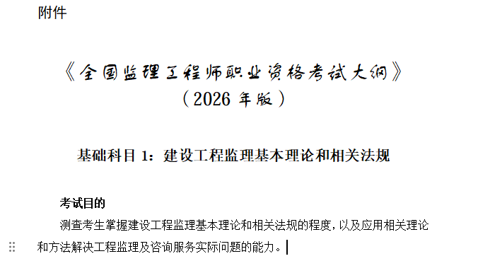 2026年注册监理工程师新大纲已正式发布,考试范围明确划定。新版大纲核心框架稳定,考生需聚焦新增条款强化备考。