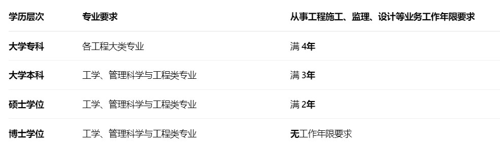 需同时满足学历、专业及工作年限要求,具体如下表所示: