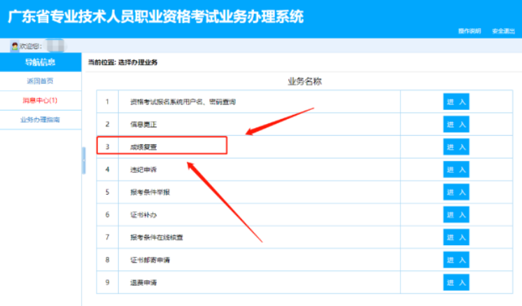(四)选择成绩复查