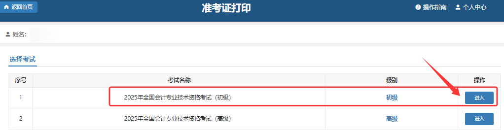 第3步:选择“全国会计专业技术资格考试(初级)”点击进入