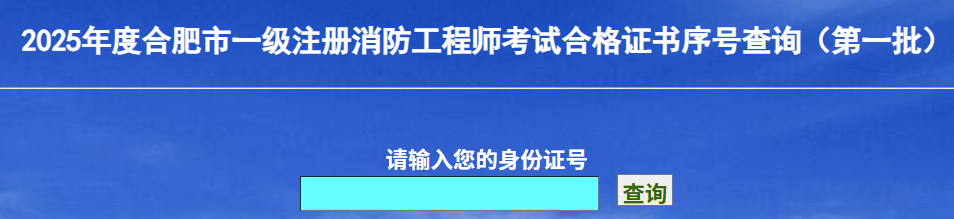 近日合肥人事考试网开通2025年一级消防工程师第一批证书序号查询入口,需要输入身份证号码进行查询。