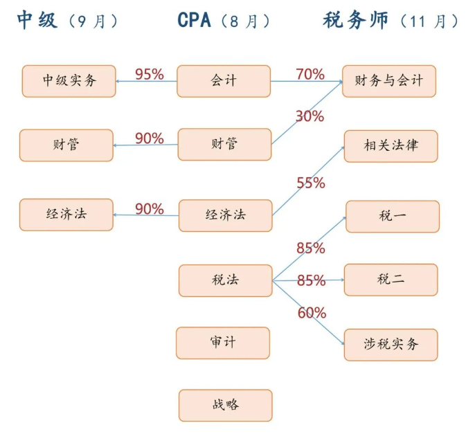 CPA的《税法》和《经济法》与《中级经济法》对应性也很高。