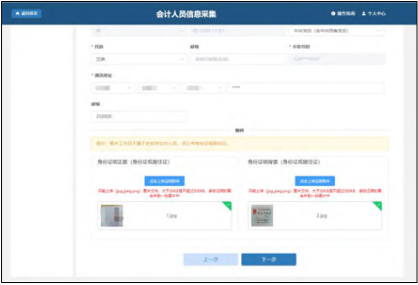 注:(1) 选择“会计人员”的,后面“工作经历”采集时需要填写“会计工作经历”。