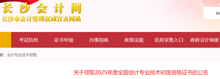 2025年度会计初级资格证书已由湖南省财政厅运抵我市,现将领取证书有关事项公告如下: