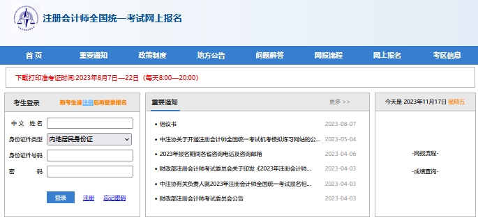 第一步:进入注会网上报名系统,输入姓名、身份证号、密码;