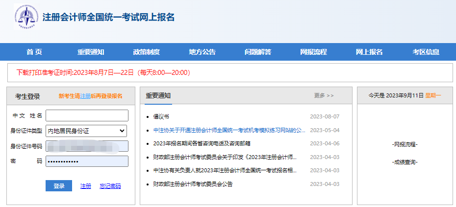 第一步:进入中注协官方网站,登录网上报名系统(https://cpaexam.cicpa.org.cn)。