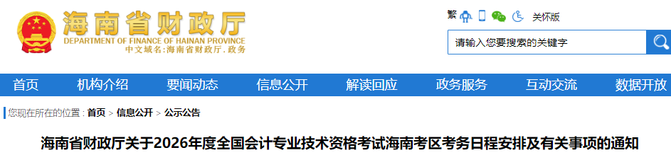 2026年度会计资格考试海南考区不安排补报名。