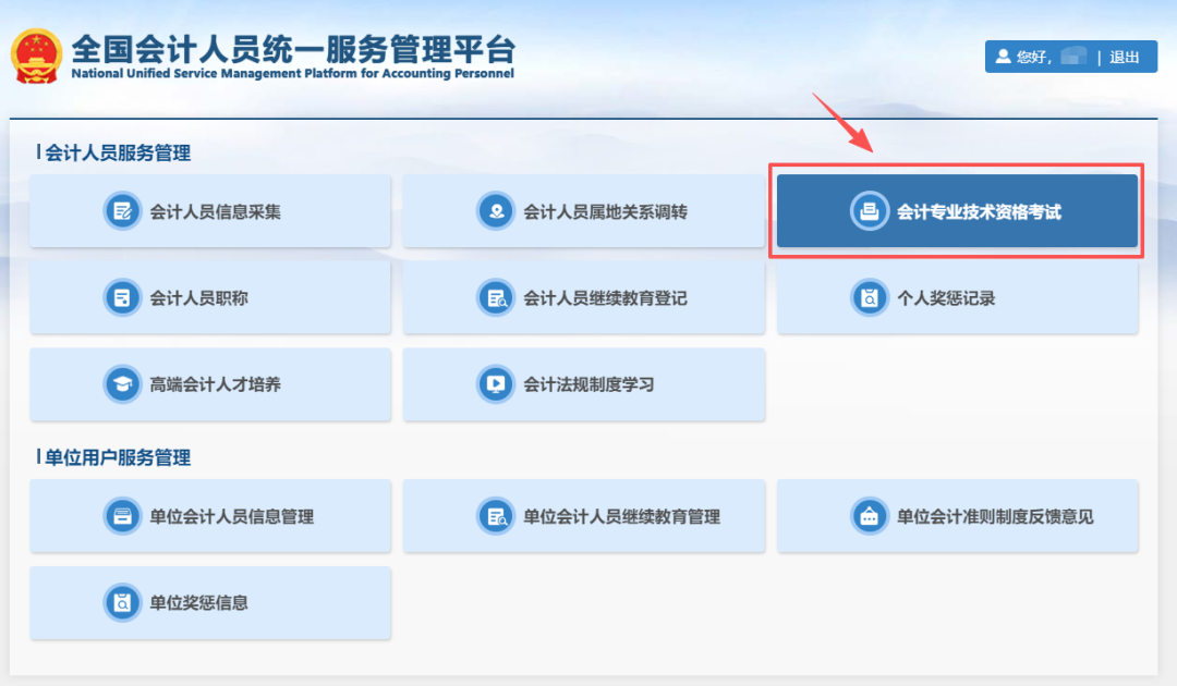 第二步:点击【会计专业技术资格考试】。