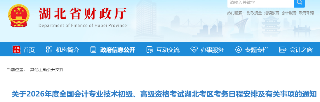 湖北考区初级、高级会计资格考试报名起止时间为2026年1月5日6:00至1月27日12:00,缴费统一在1月27日18∶00截止。