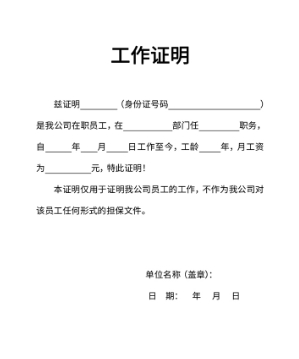 考生需要到在单位部门开具工作证明以此来证明自己从事会计工作的年限。工作证明模版如下: