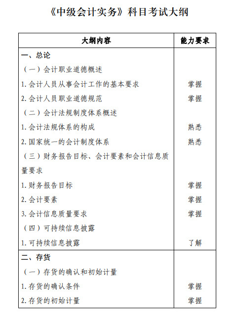 (一)《中级会计实务》科目考试大纲。