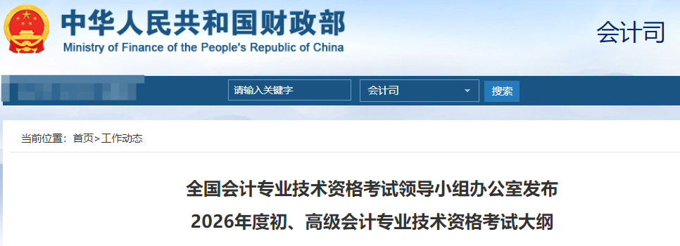 12月25日,财政部会计司发布了《全国会计专业技术资格考试领导小组办公室发布2026年度初、高级会计专业技术资格考试大纲》,其中明确全国会计专业技术资格考试领导小组办公室制定了2026年度初级会计考试大纲,现予发布。