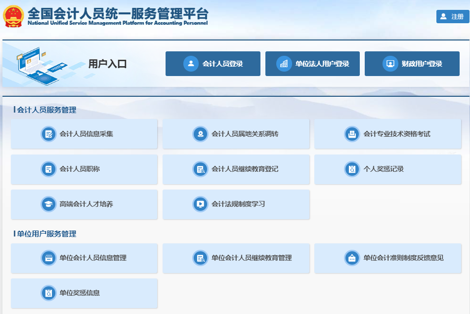 第1步:登录全国会计人员统一服务管理平台https://ausm.mof.gov.cn/index/