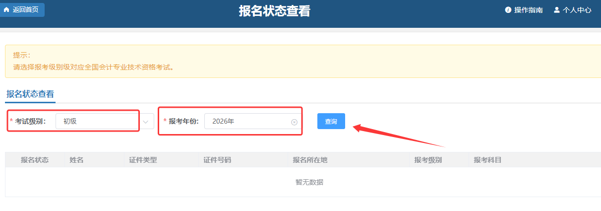 2026年度山东省初级会计报名状态查询入口:全国会计人员统一服务管理平台(ausm.mof.gov.cn)。