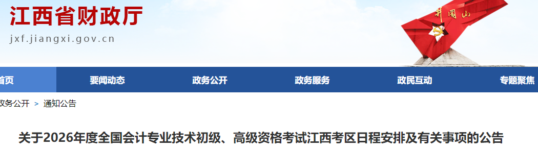 根据财政部、人力资源社会保障部以及全国会计专业技术资格考试领导小组办公室《关于2026年度全国会计专业技术资格考试考务日程安排及有关事项的通知》(会考〔2025〕2号)要求,现就我省2026年度会计初级、高级资格考试有关事项公告如下:
